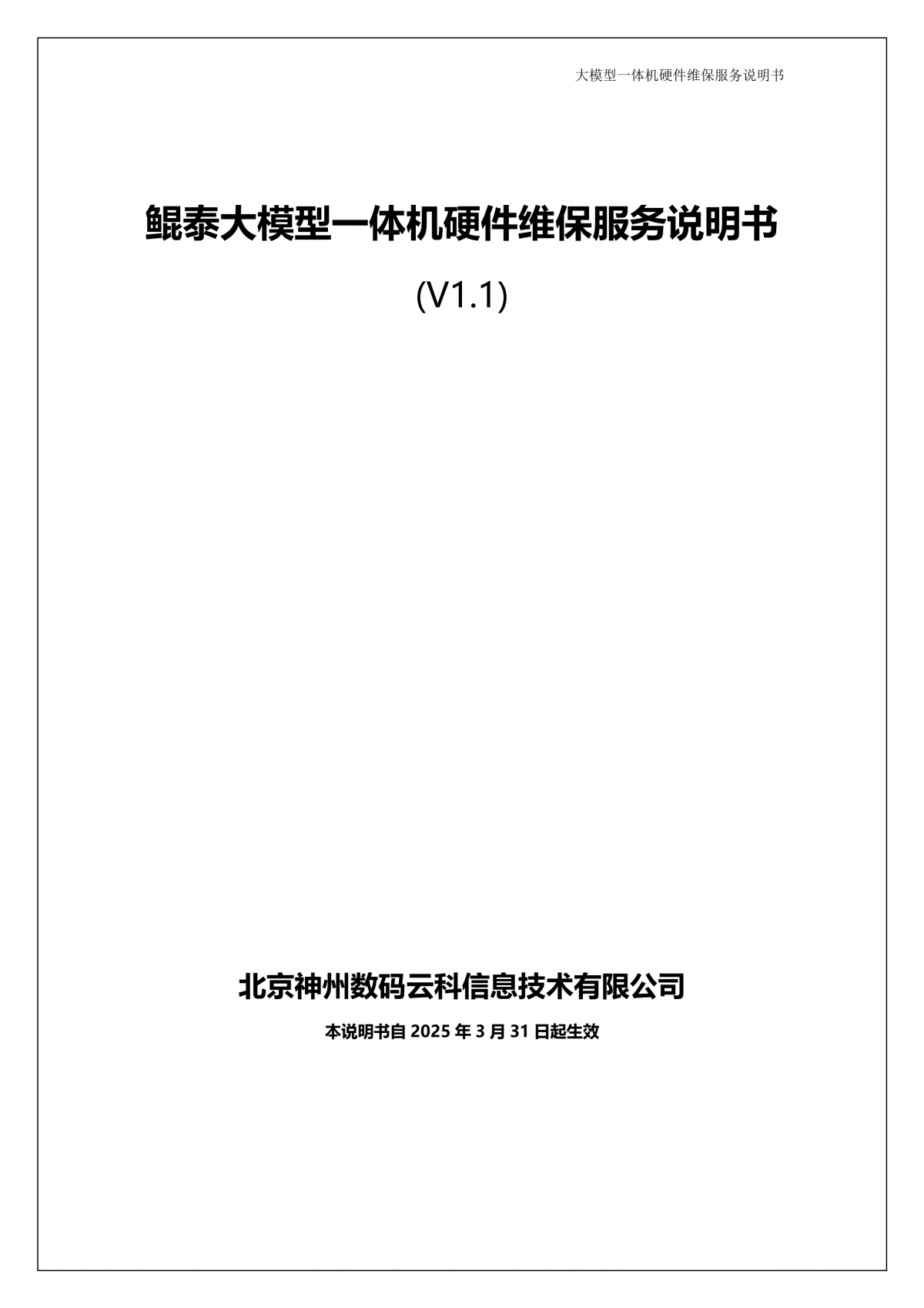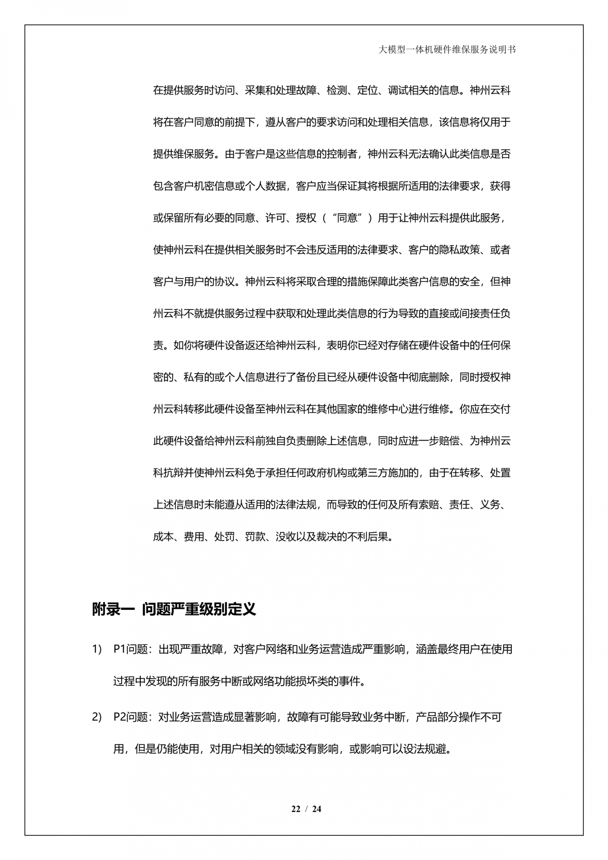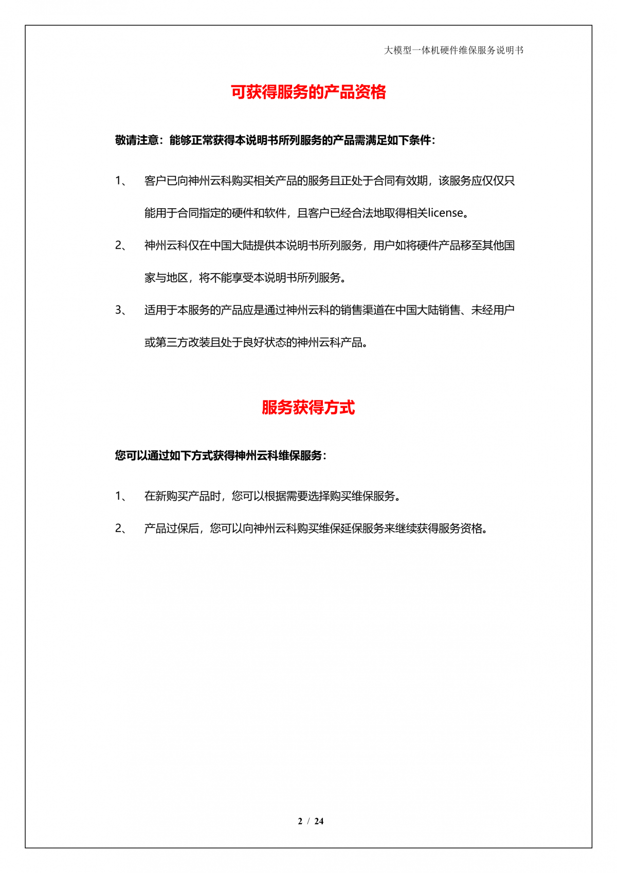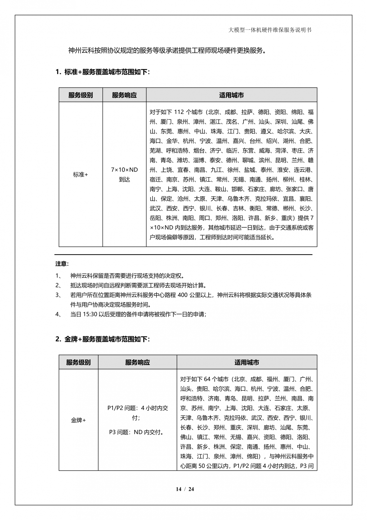 350vip8888新葡的京A924 DS大模型一体机硬件维保服务说明书_V1.1
